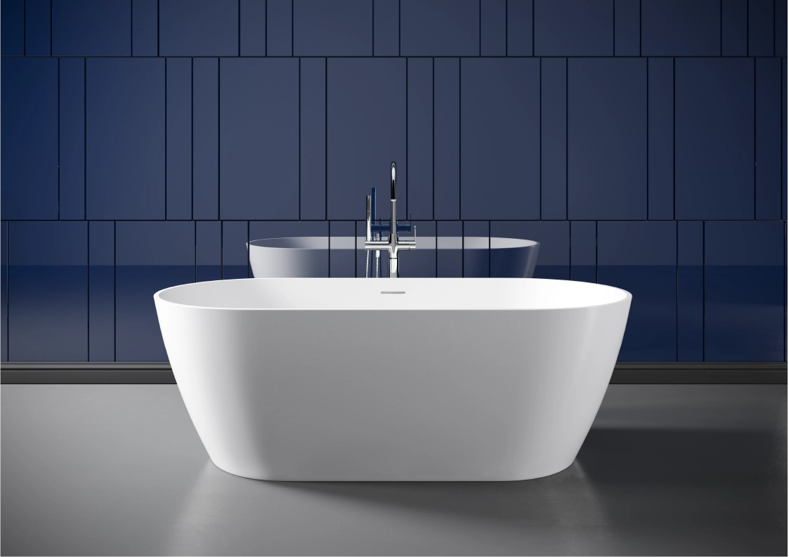 The core material is consisted of marble, resin and polymer with the use of high technology invention from Germany in the manufacturing process. These materials are produced under vacuum thereby eliminating all trapped air making them non porous and thus absorbing much less water than their natural counterpart. The result is a unique and versatile materialperfect for making luxurious bathtubs.