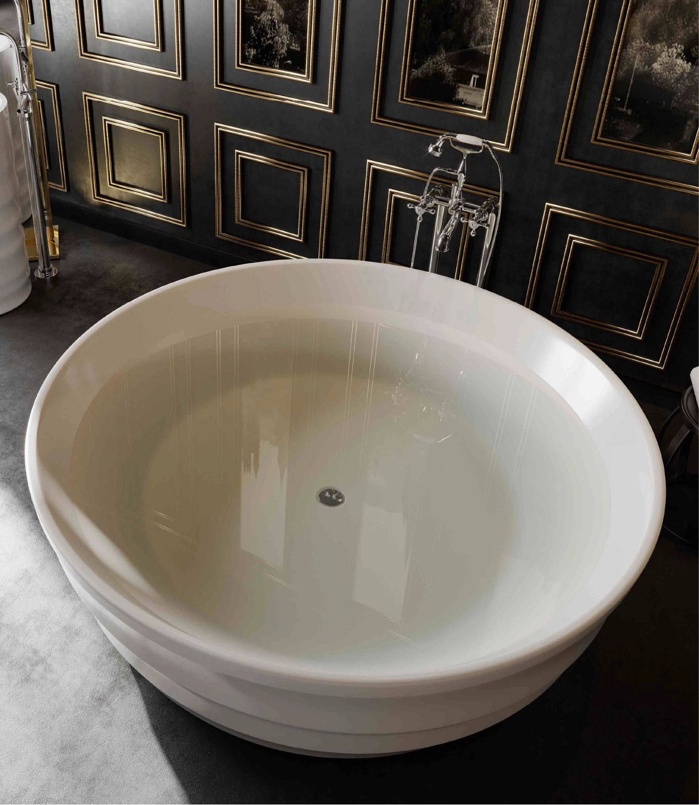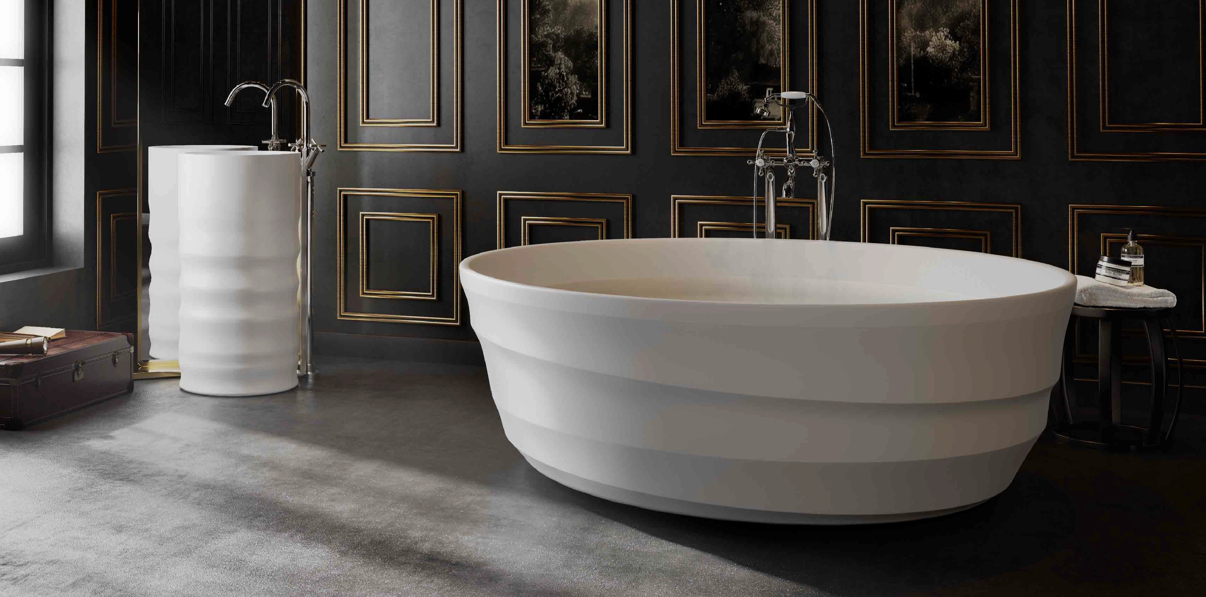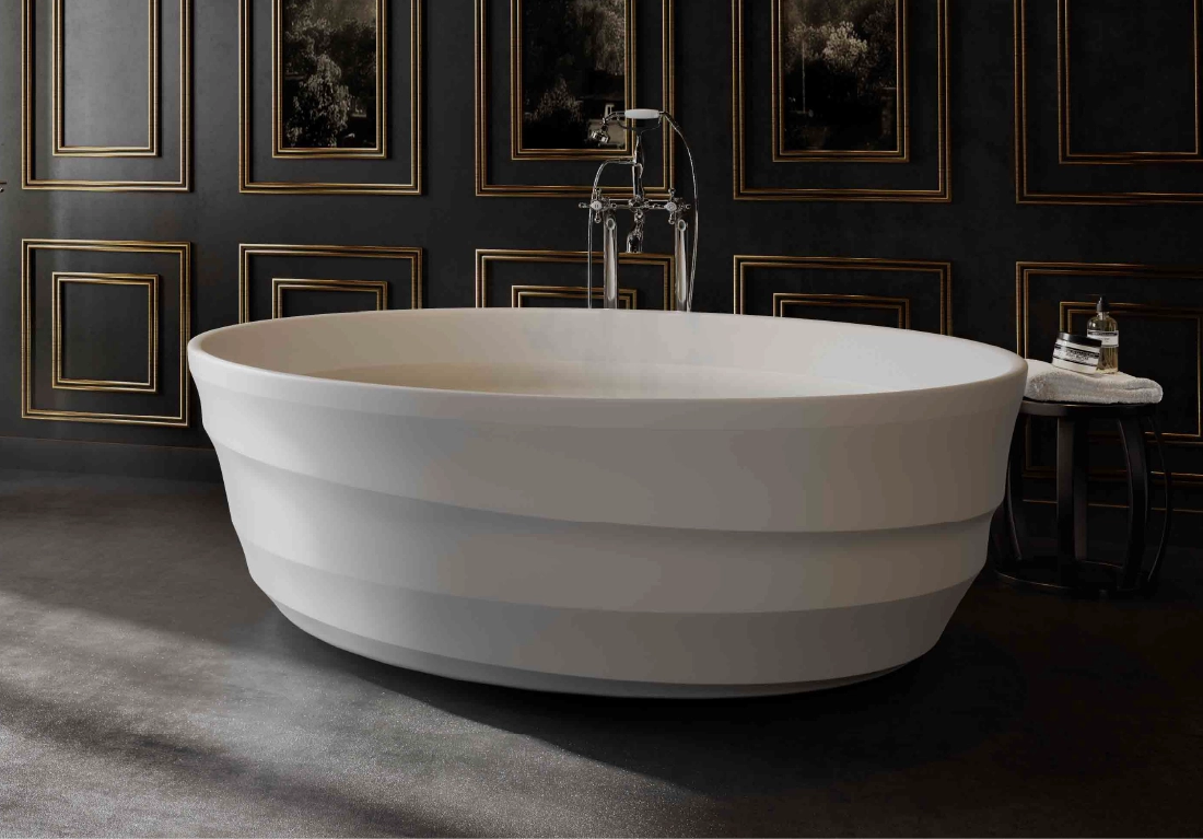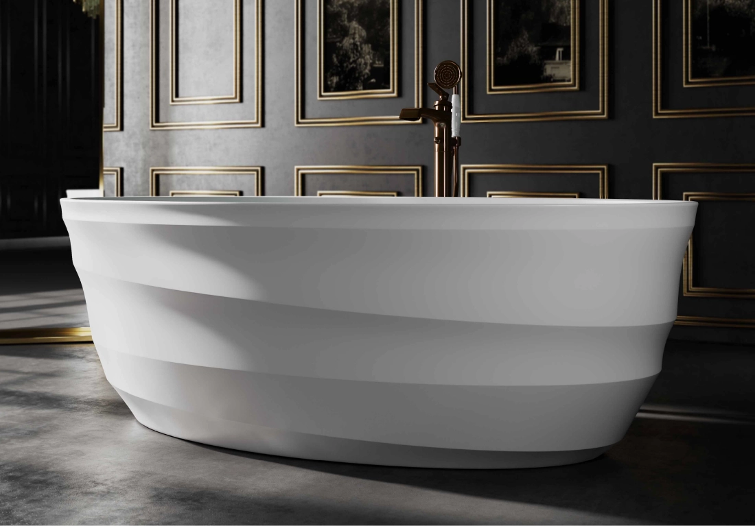 The core material is consisted of marble, resin and polymer with the use of high technology invention from Germany in the manufacturing process. These materials are produced under vacuum thereby eliminating all trapped air making them non porous and thus absorbing much less water than their natural counterpart. The result is a unique and versatile materialperfect for making luxurious bathtubs.