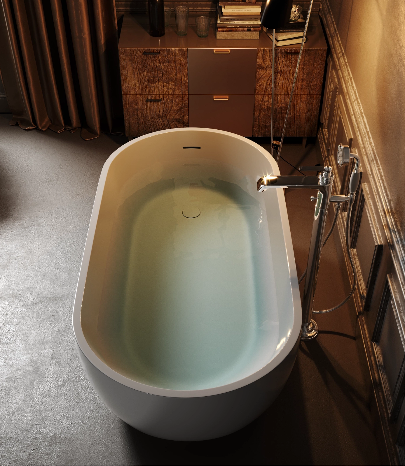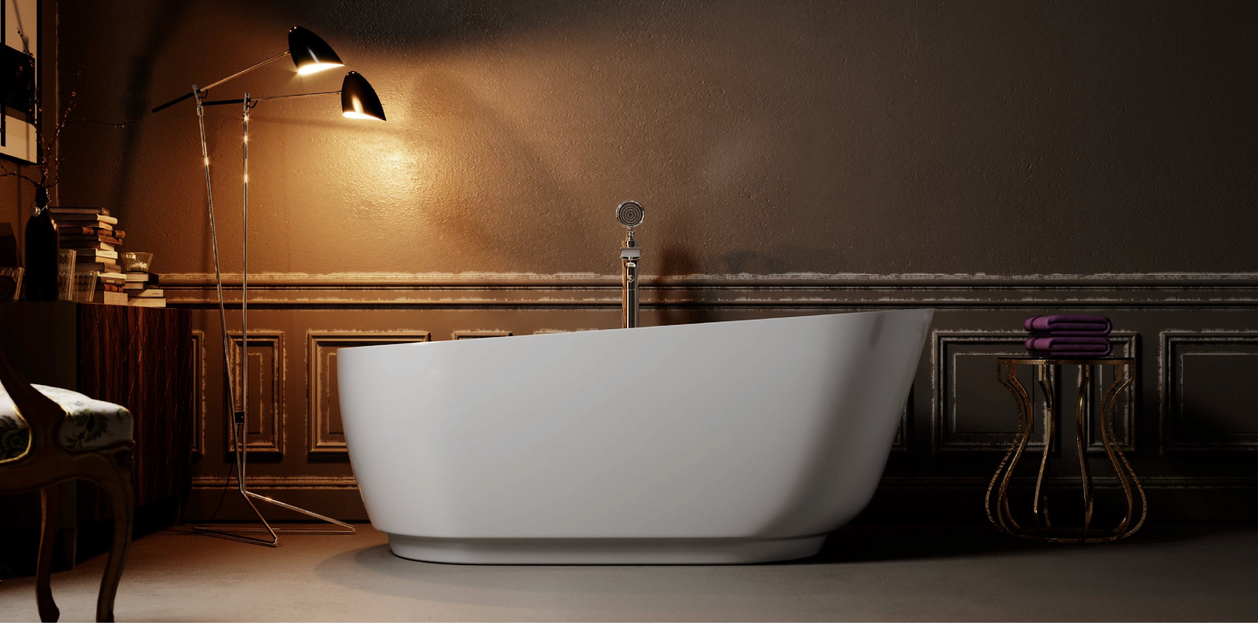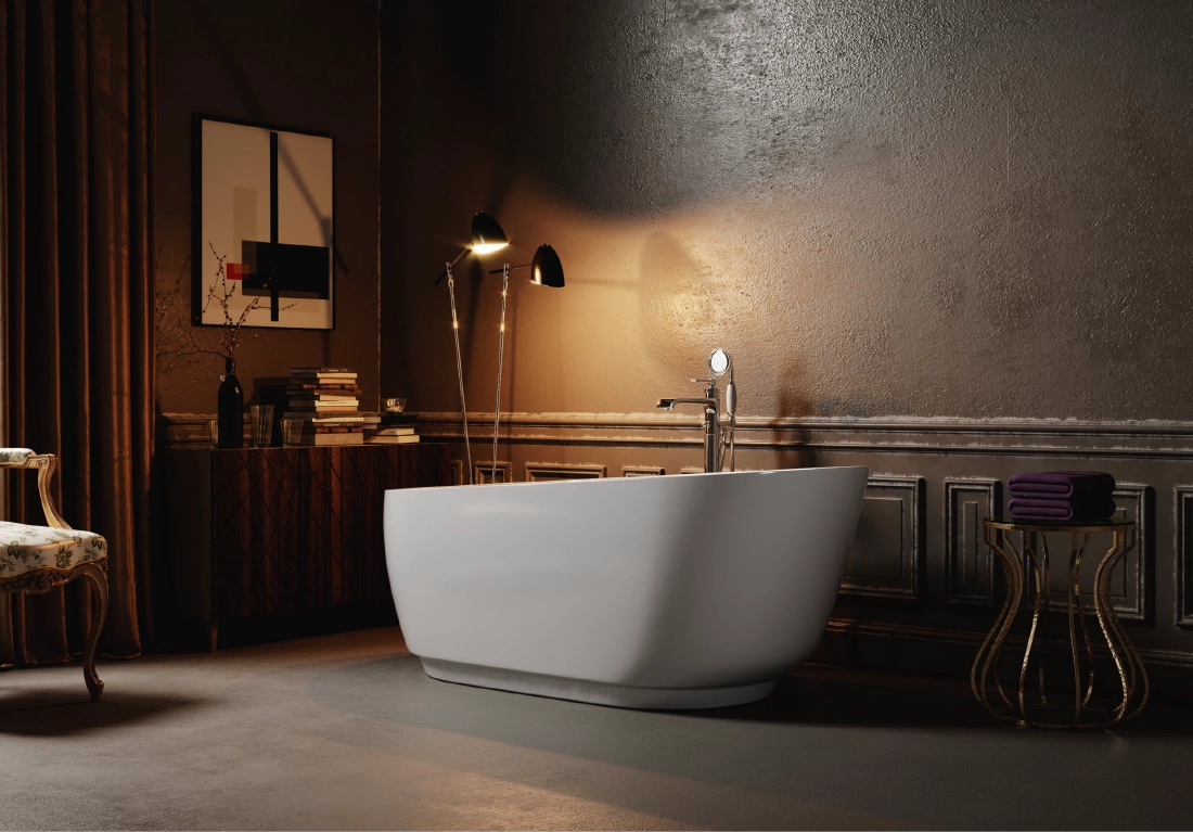 The core material is consisted of marble, resin and polymer with the use of high technology invention from Germany in the manufacturing process. These materials are produced under vacuum thereby eliminating all trapped air making them non porous and thus absorbing much less water than their natural counterpart. The result is a unique and versatile materialperfect for making luxurious bathtubs.