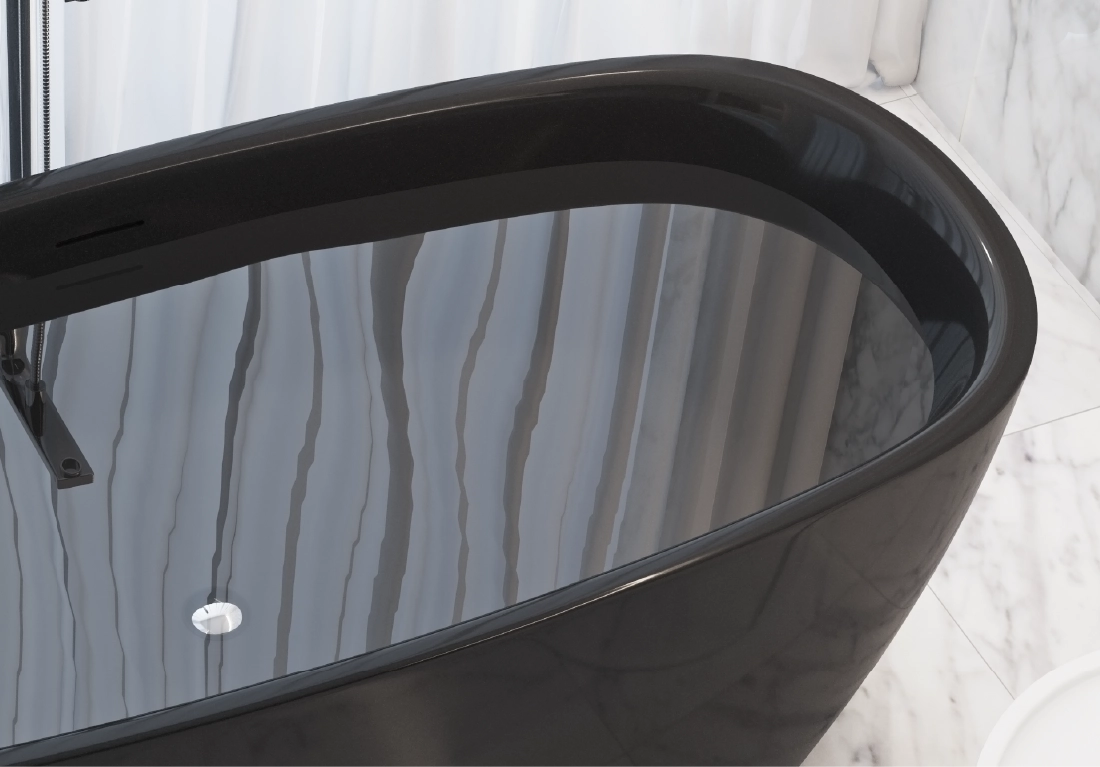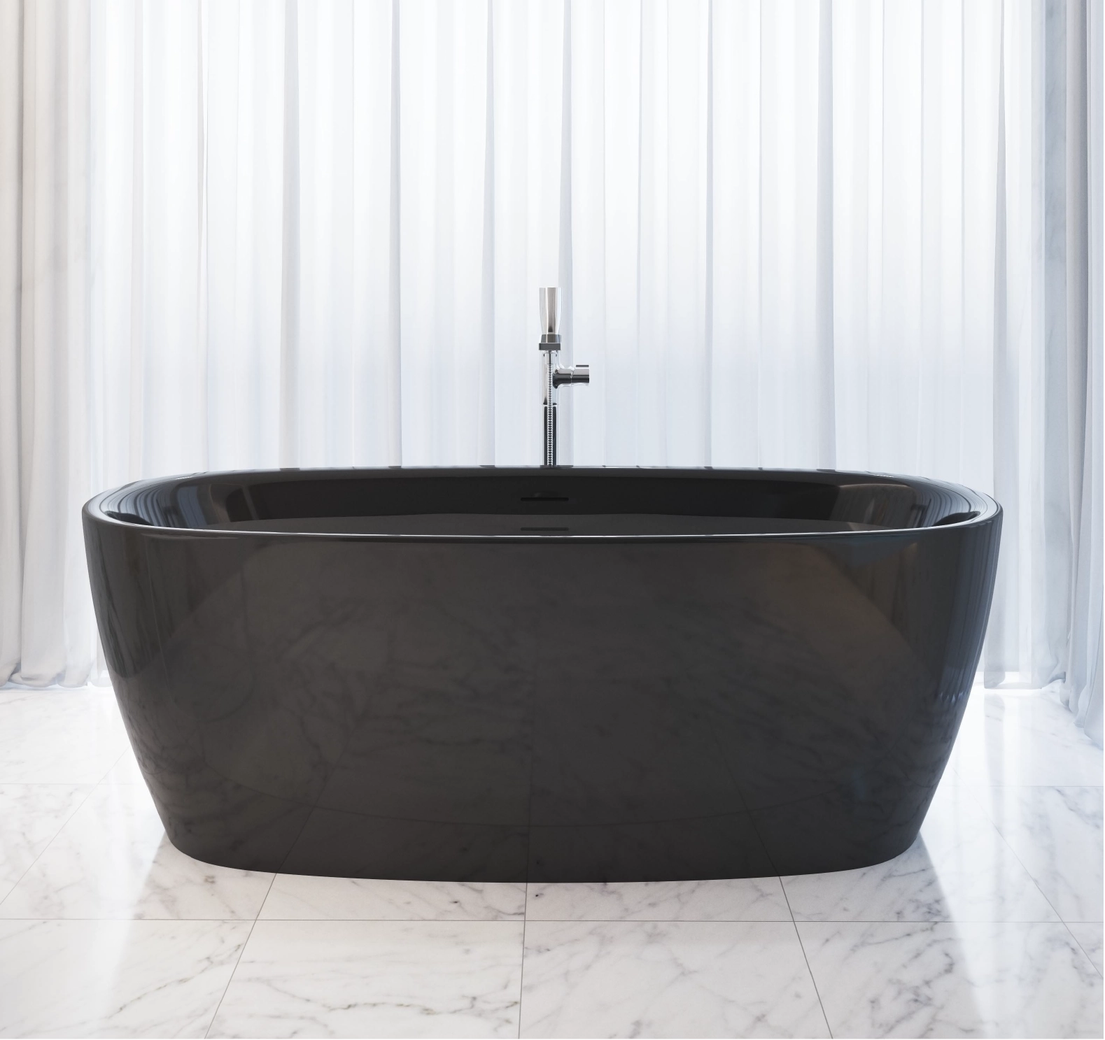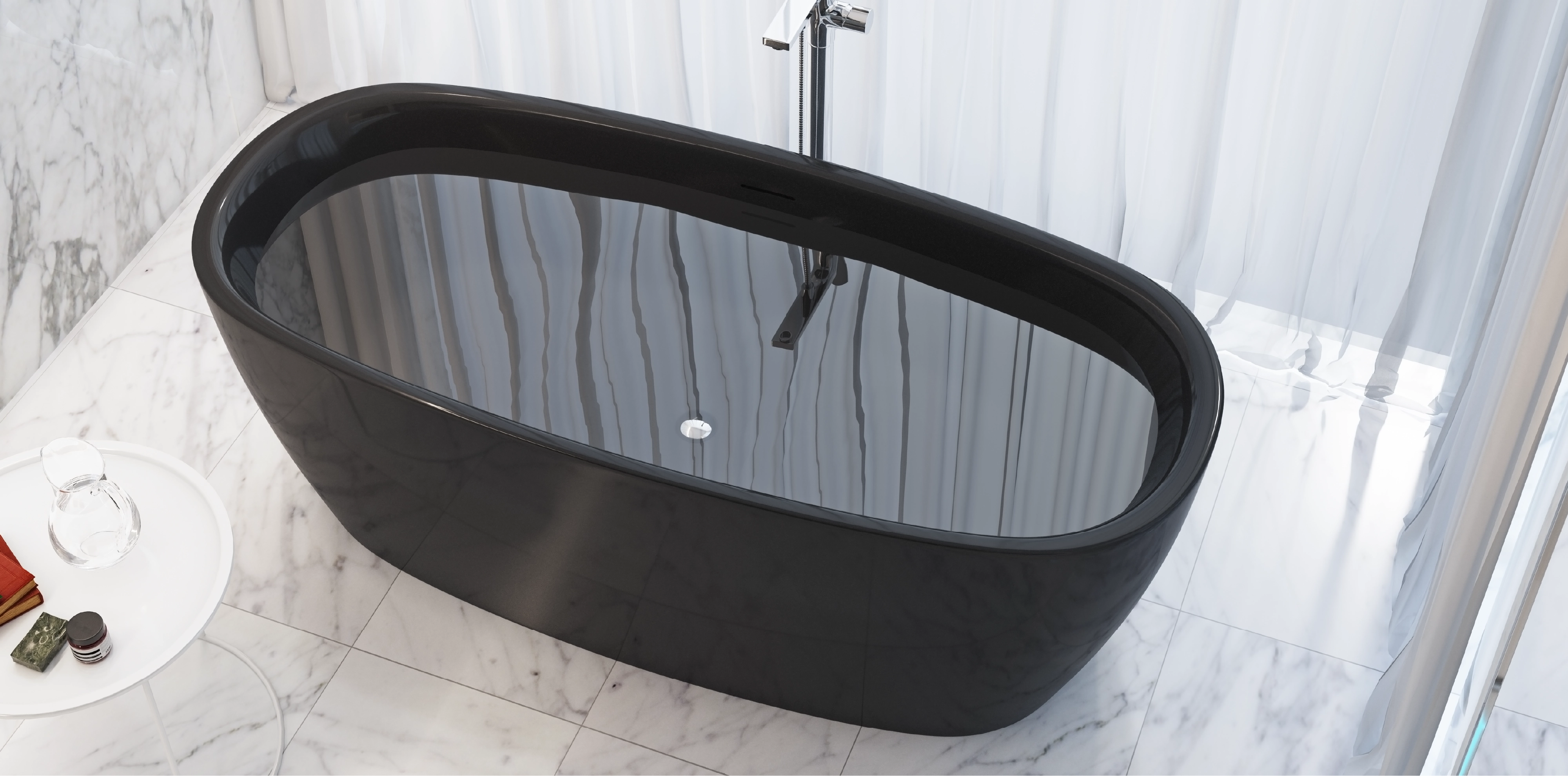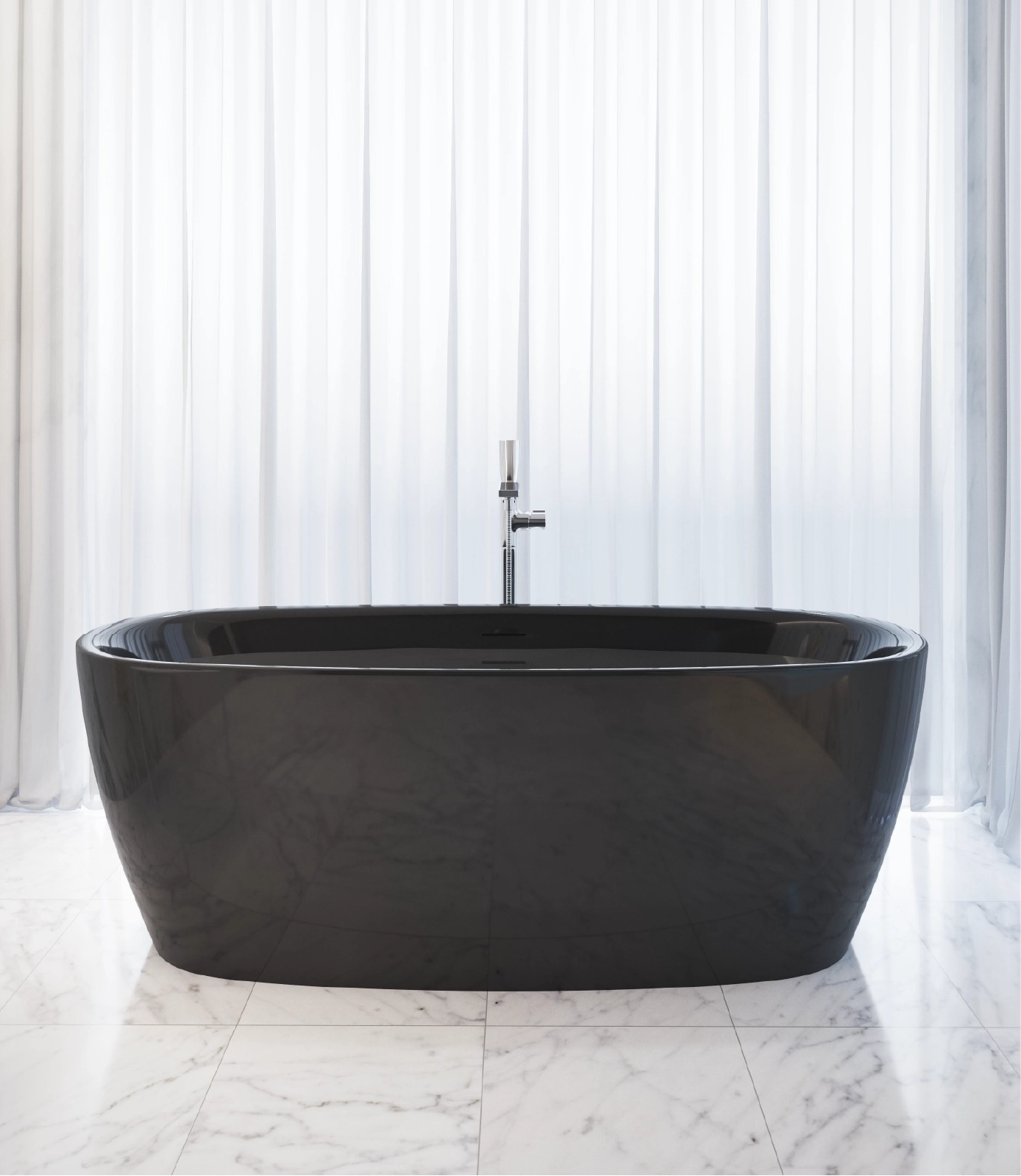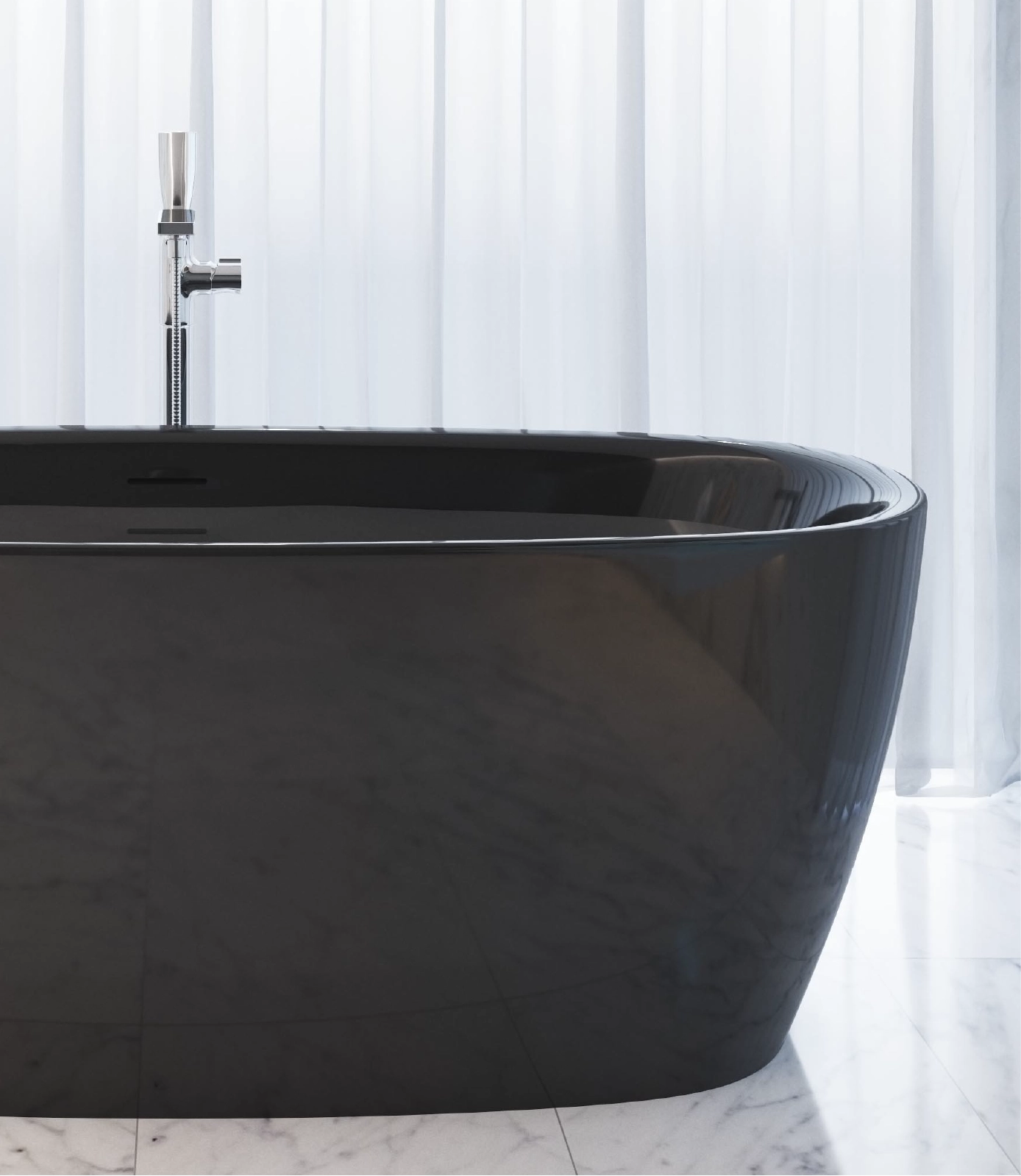 The core material is consisted of marble, resin and polymer with the use of high technology invention from Germany in the manufacturing process. These materials are produced under vacuum thereby eliminating all trapped air making them non porous and thus absorbing much less water than their natural counterpart. The result is a unique and versatile materialperfect for making luxurious bathtubs.