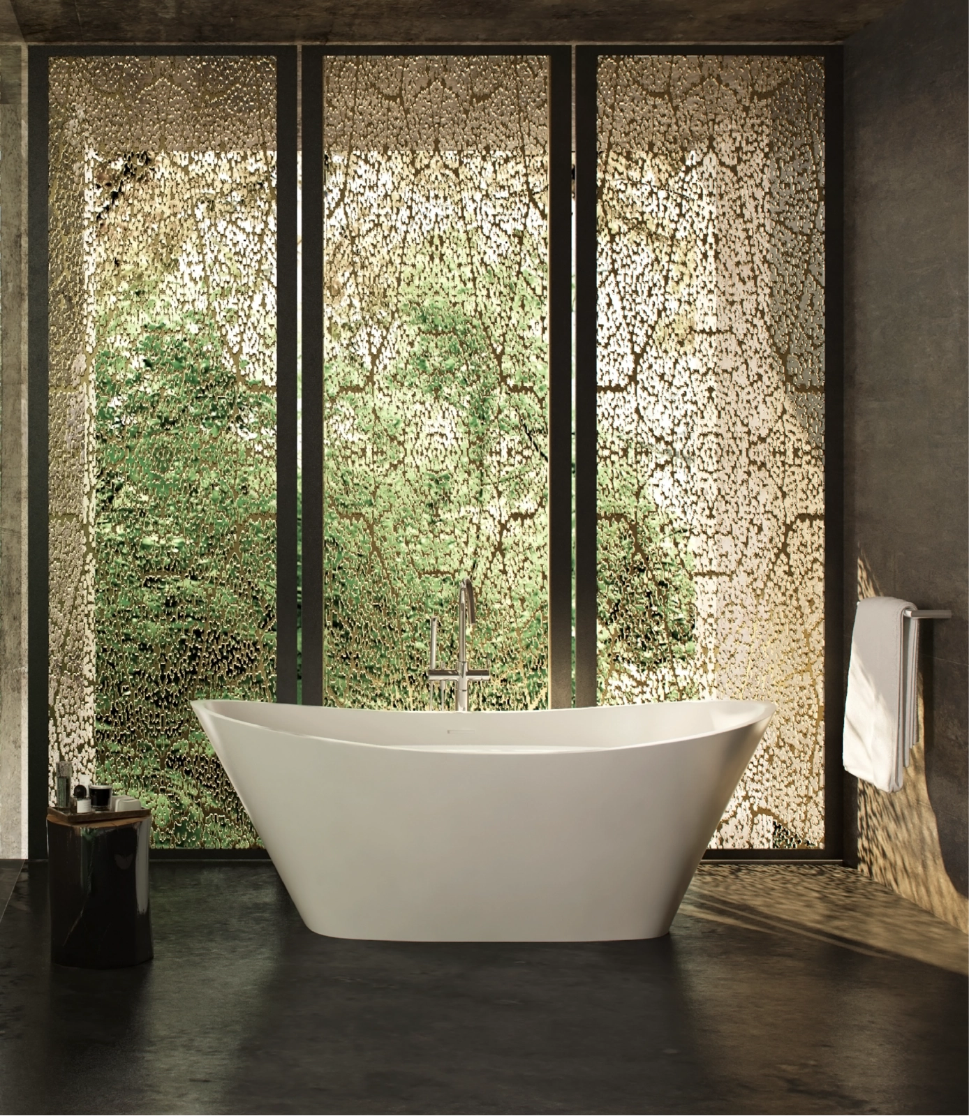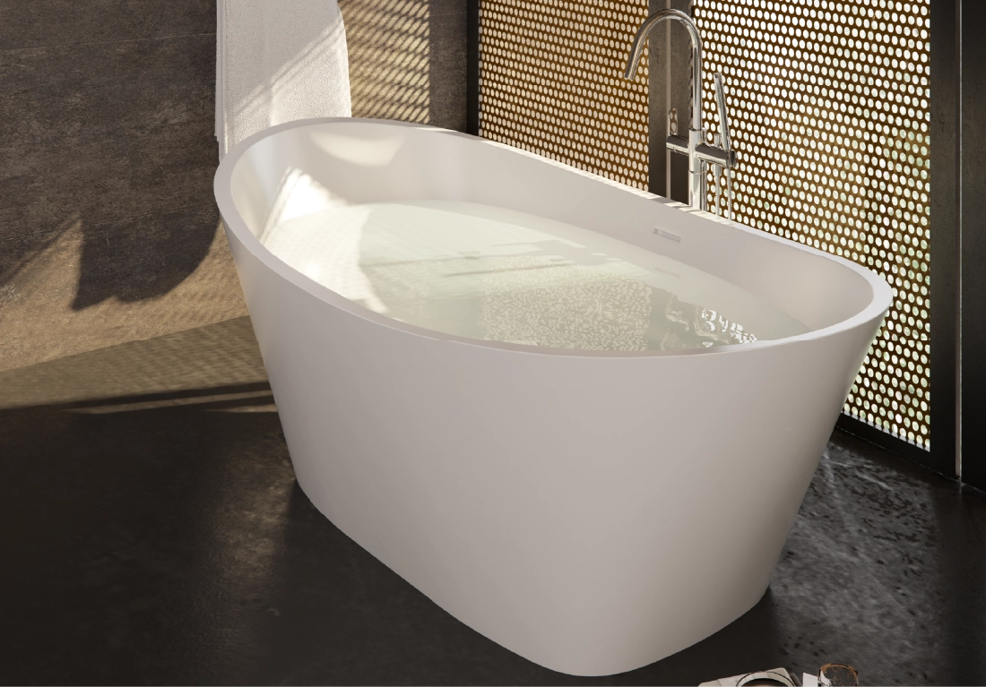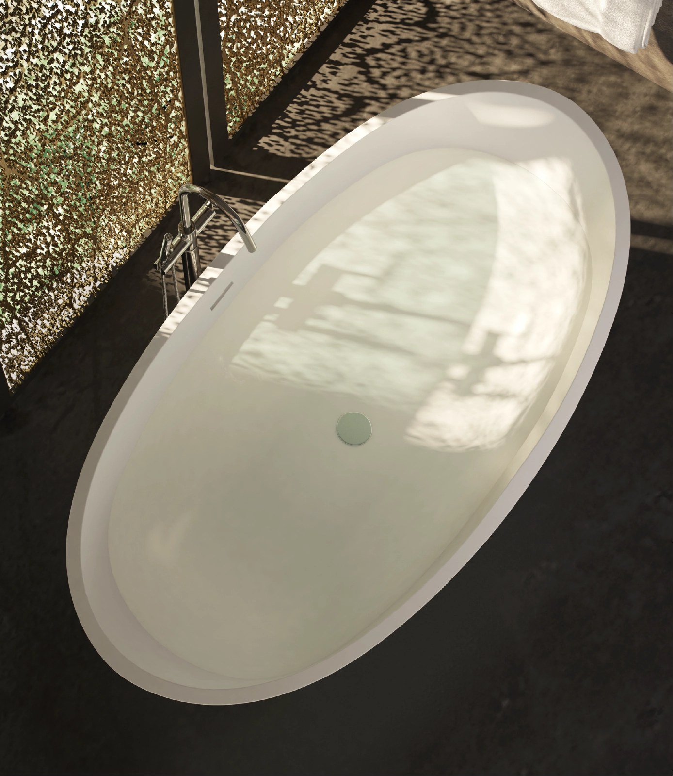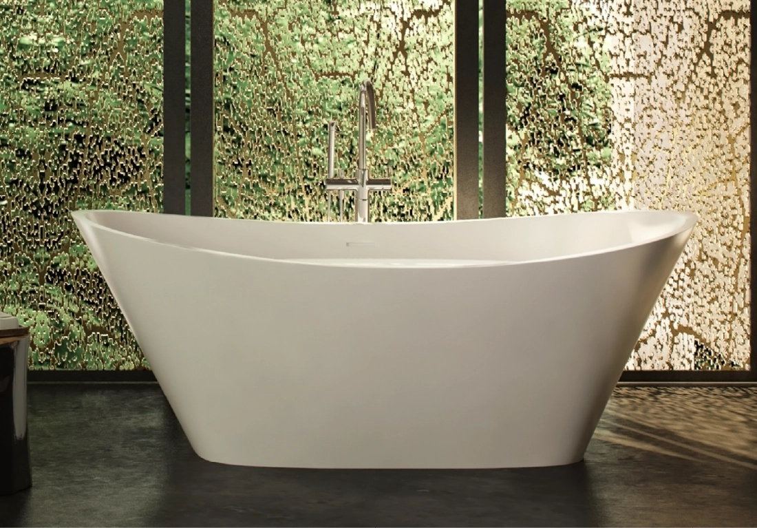 The core material is consisted of marble, resin and polymer with the use of high technology invention from Germany in the manufacturing process. These materials are produced under vacuum thereby eliminating all trapped air making them non porous and thus absorbing much less water than their natural counterpart. The result is a unique and versatile materialperfect for making luxurious bathtubs.