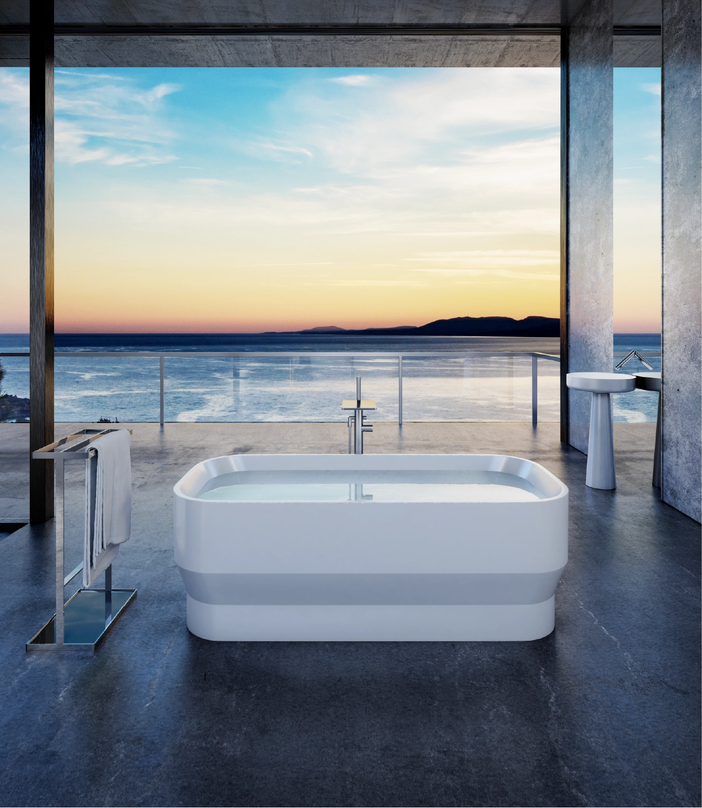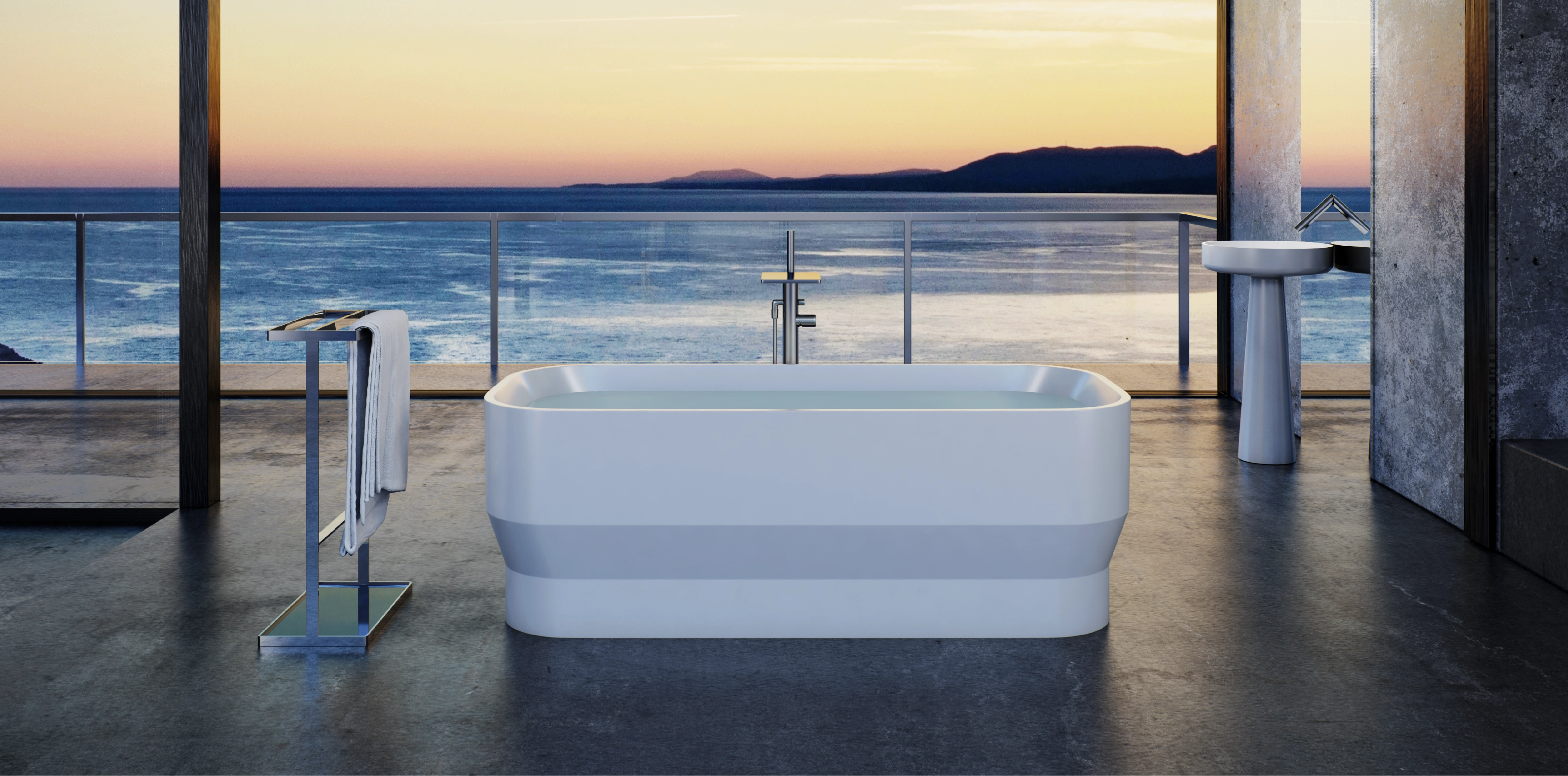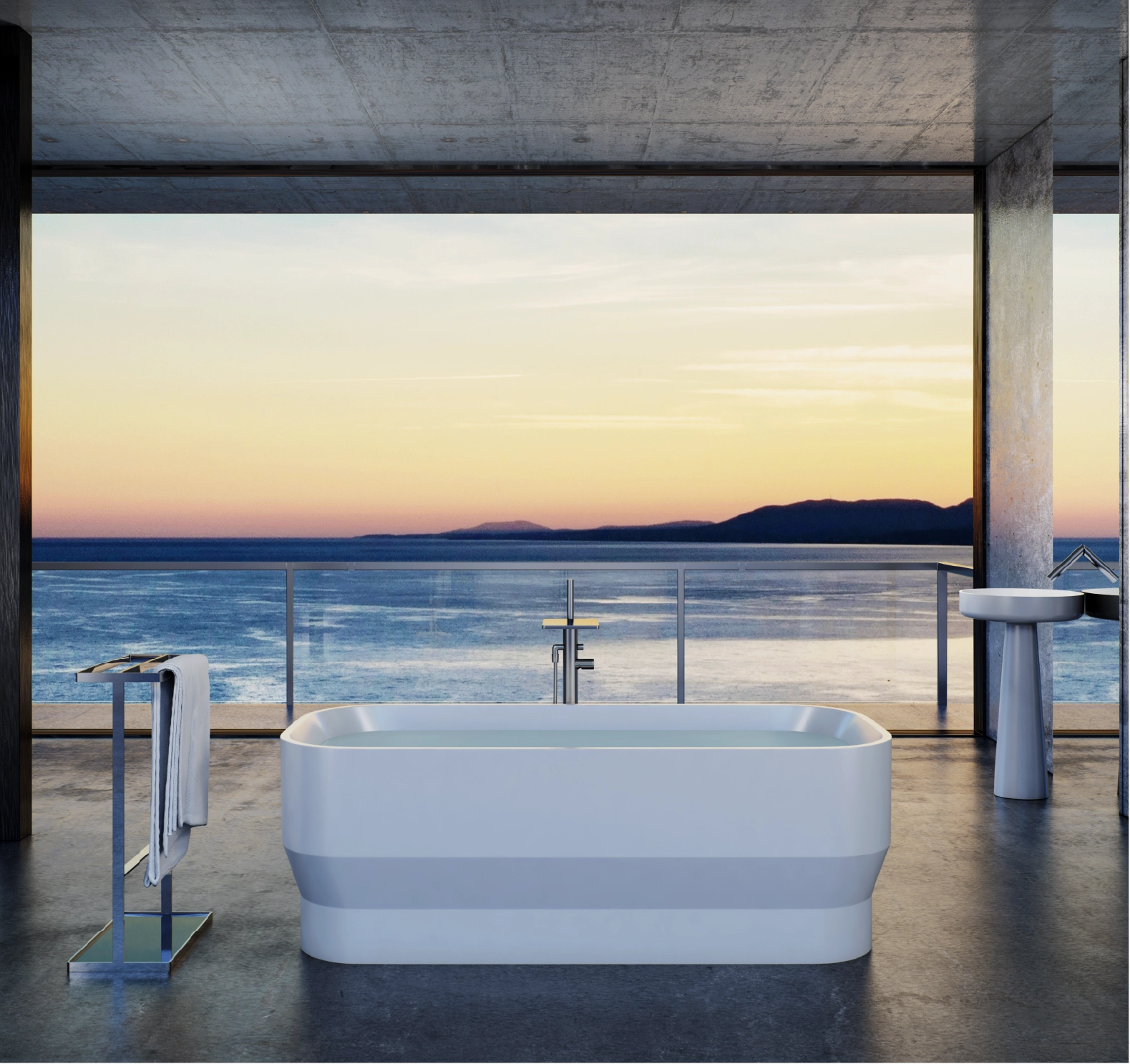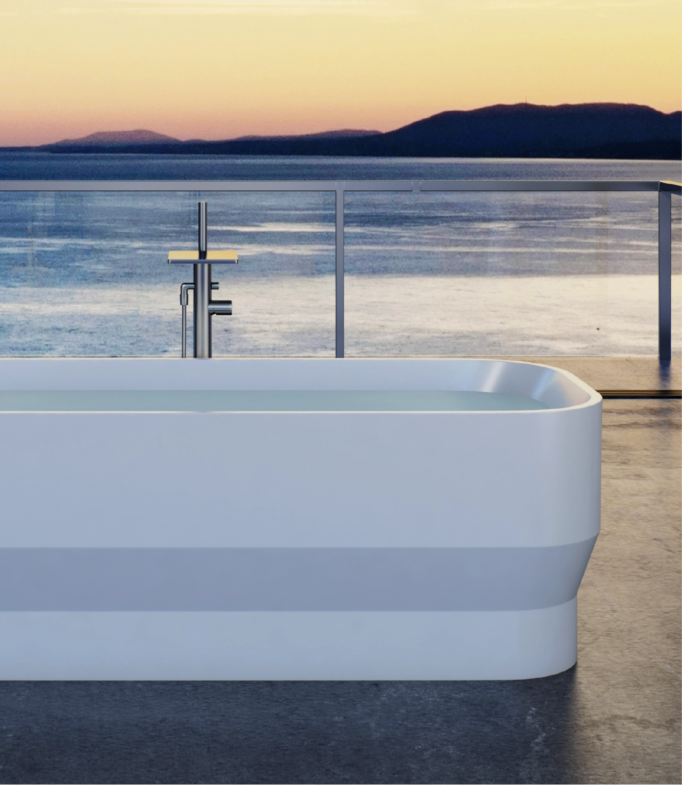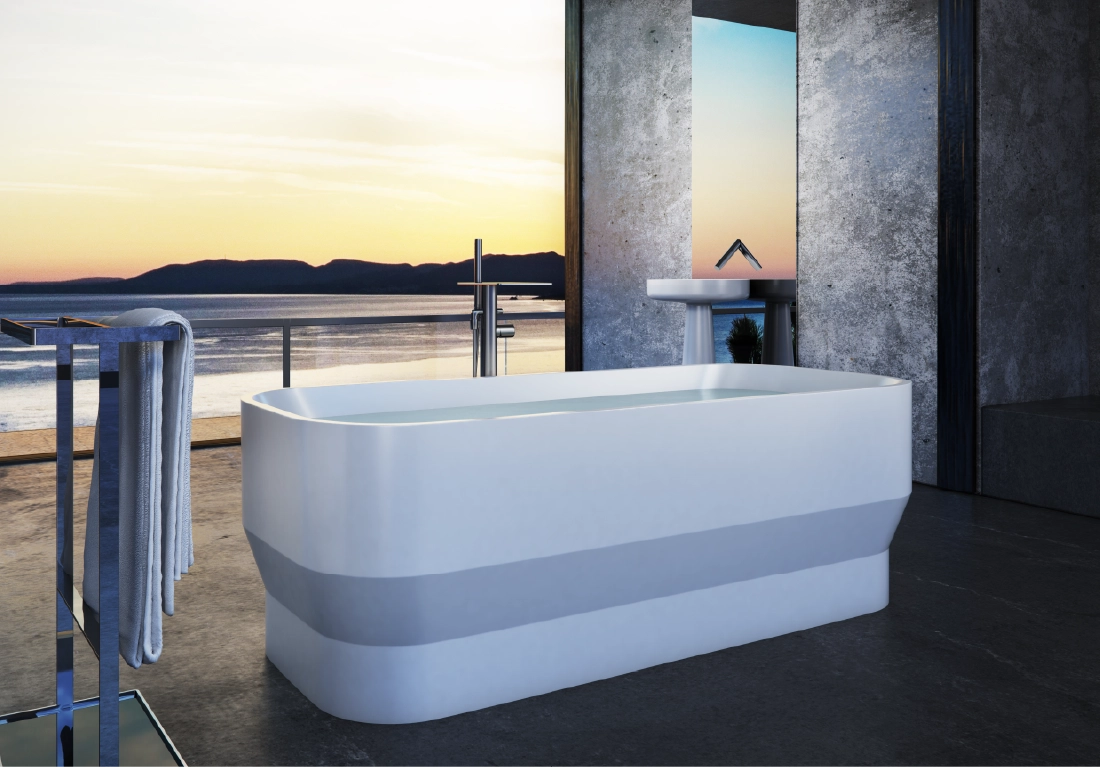 The core material is consisted of marble, resin and polymer with the use of high technology invention from Germany in the manufacturing process. These materials are produced under vacuum thereby eliminating all trapped air making them non porous and thus absorbing much less water than their natural counterpart. The result is a unique and versatile materialperfect for making luxurious bathtubs.