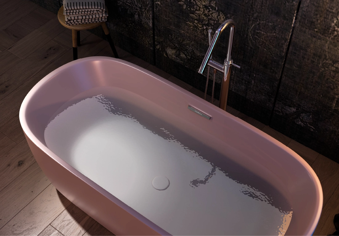 The core material is consisted of marble, resin and polymer with the use of high technology invention from Germany in the manufacturing process. These materials are produced under vacuum thereby eliminating all trapped air making them non porous and thus absorbing much less water than their natural counterpart. The result is a unique and versatile materialperfect for making luxurious bathtubs.