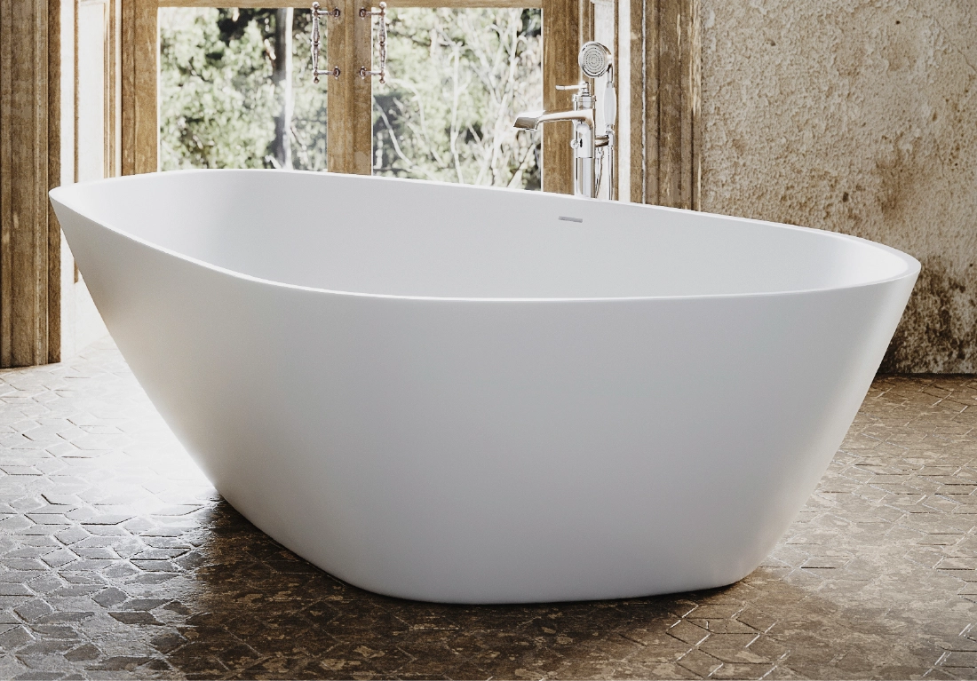 The core material is consisted of marble, resin and polymer with the use of high technology invention from Germany in the manufacturing process. These materials are produced under vacuum thereby eliminating all trapped air making them non porous and thus absorbing much less water than their natural counterpart. The result is a unique and versatile materialperfect for making luxurious bathtubs.