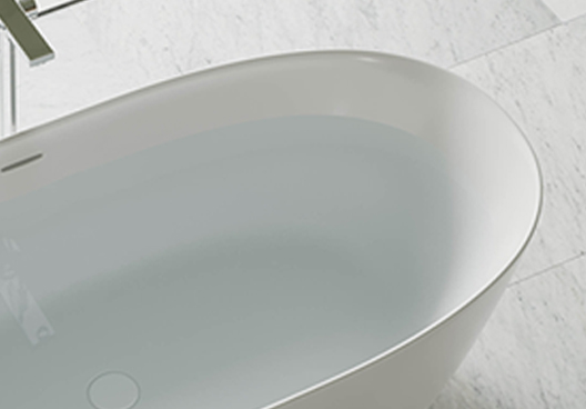 The core material is consisted of marble, resin and polymer with the use of high technology invention from Germany in the manufacturing process. These materials are produced under vacuum thereby eliminating all trapped air making them non porous and thus absorbing much less water than their natural counterpart. The result is a unique and versatile materialperfect for making luxurious bathtubs.